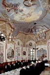 Poi si prosegue per Zirc / 47 km dal Lago Balaton /, incantevole localitá nella Selva Baconia, faro di cultura da molti secoli dove si visita l’Abbazia Cistercense: la Chiesa, la stupenda Biblioteca (piú di 58 mila incunaboli e codici) .Ci riceve un frate che parla anche del passato, presente e futuro dell’ ordine.